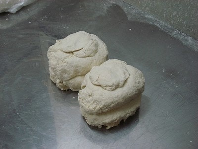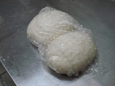 ⑥取り出した玉はビニールに包んで熟成するようねかせる
