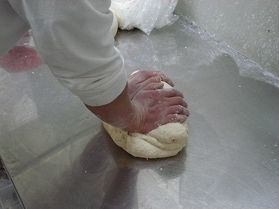 ⑦寝かせた生地を内側に丸め込むようにしてこねる