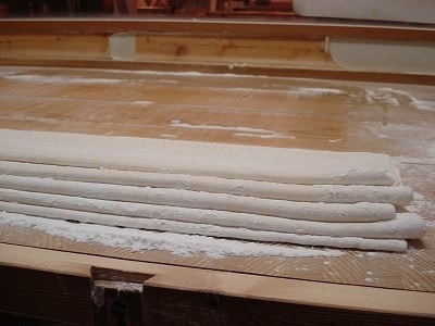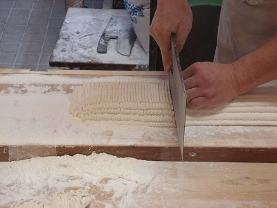 ⑰生地を包丁で1.8~3.8㎜の幅で切る。