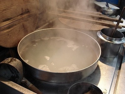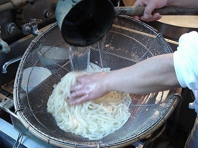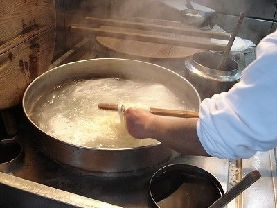 なるべく沢山のお湯でゆでて下さい。加須手打うどん会はもちろんの事、うどんは大きな鍋で沢山のお湯を使ってゆでております。せっかく美味しいうどんを打っても、これを忘れると大失敗です。