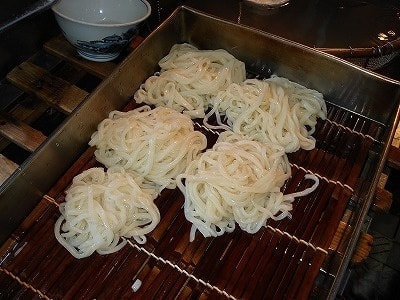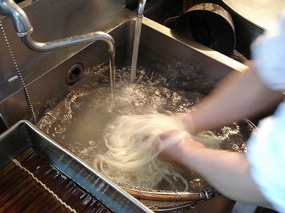 冷水で2、3回よくすすぎ、ザルに玉どりし、出来上がり。