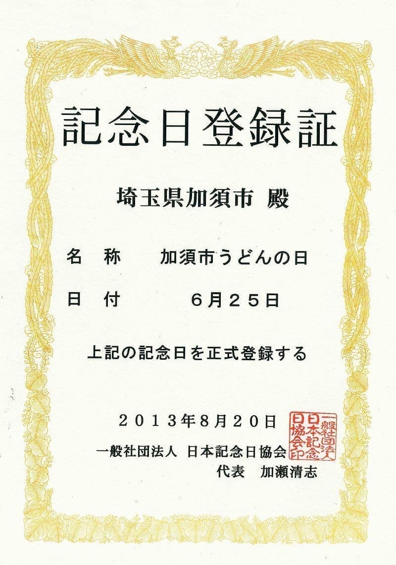このお礼状の日付にちなんで、6月25日を加須市うどんの日とすることにしました。また、このお礼状により、加須市のうどん食文化が江戸時代から300年以上続く伝統を有することが確認できます